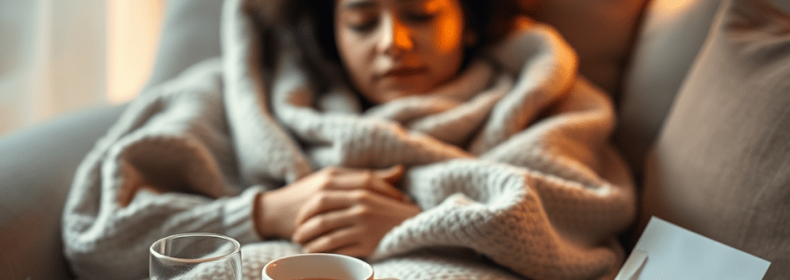 Puedes beber líquidos, descansar y tomar analgésicos de venta libre para recuperarte de la gripe en tu casa. Los síntomas de la gripe,a menudo, comienzan uno o dos días después de estar en contacto con el virus que causa la gripe. Los síntomas pueden aparecer de repente. En las personas sanas los síntomas de la gripe varían. Los síntomas son dolor de garganta, goteo de la nariz, fiebre, escalofríos y dolores musculares. Los síntomas de la gripe pueden hacer que te sientas muy mal. No obstante, si por lo demás estás saludable, eres menor de 65 años y no estás embarazada, generalmente puedes recuperarte en tu casa en lugar de ver al profesional de la salud.